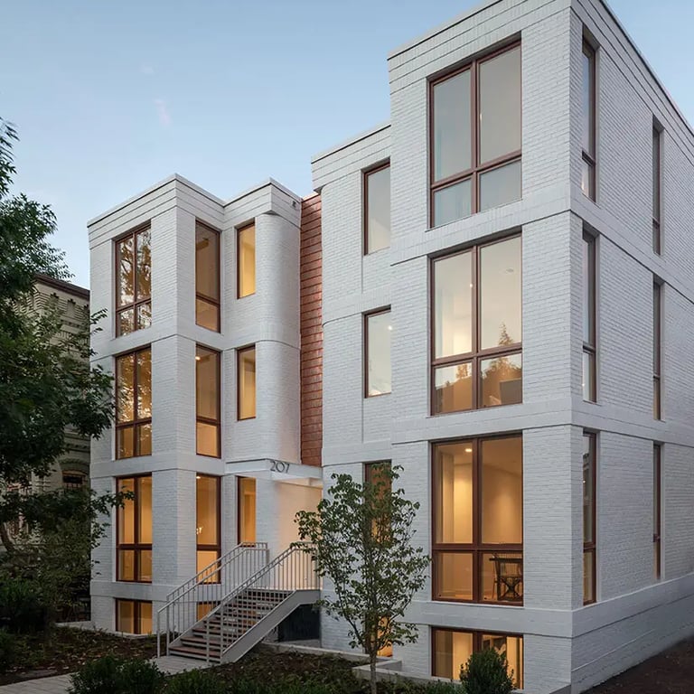 This revitalization of a historic structure has created an efficient and modern co-living residence while preserving the aesthetic integrity of the neighborhood. Each floor is an independent, five or six-person accommodation unit, with private bedrooms and bathrooms but shared living spaces. This arrangement, designed by EL Studio, offers modern amenities, privacy, and security to Washington residents looking to reside closer to the center of the city.